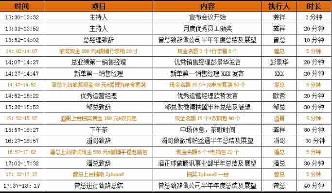 凤凰、扶翼的邹总上台细心了分析了上半年的所有数据,并做出了下半年将强化运营团队,加强销售管理,完成XXX的小目标的豪言壮语;