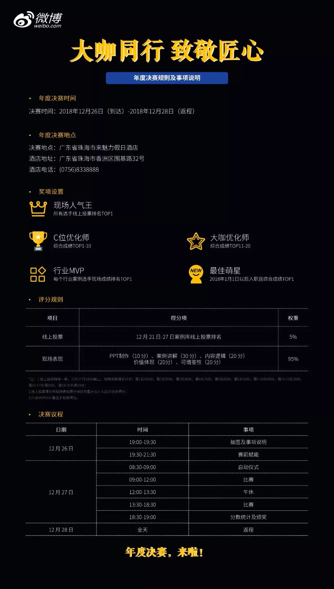 2018年12月26-28日,“微博EBS全国代理商优秀运营2018年度案例大咖秀决赛”在珠海来魅力假日酒店隆重举行。广州响当当的小伙伴此行可谓收获颇丰,把各个奖项拿了个遍,而且这是又一次 大满贯!